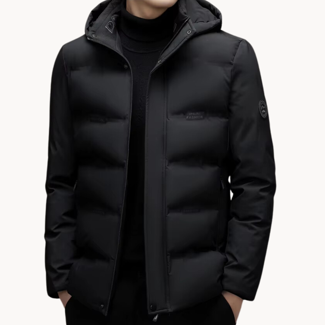 This sleek black puffer jacket exudes contemporary style while delivering maximum comfort and insulation. Its versatile design makes it a winter essential for staying warm and fashionable.