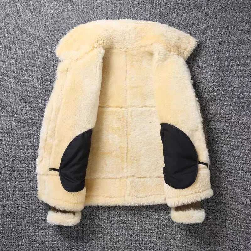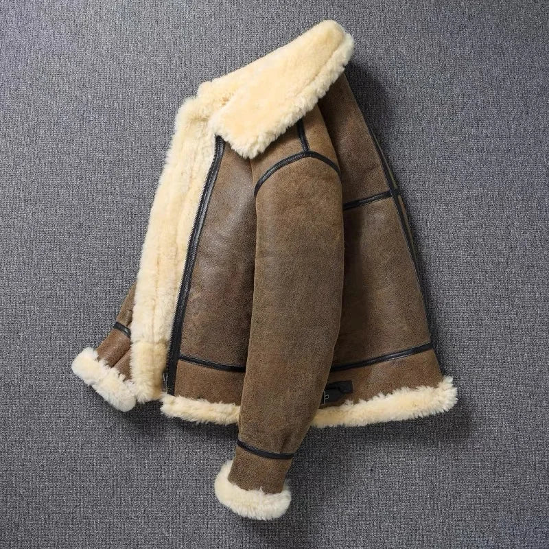 This premium shearling jacket is a timeless blend of rugged style and luxurious warmth, perfect for braving the cold in fashion.