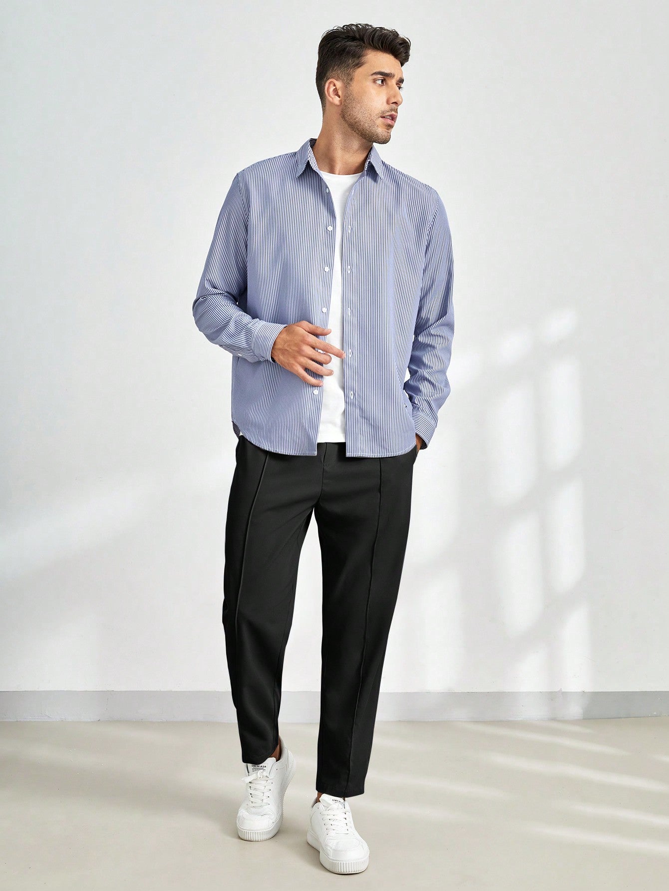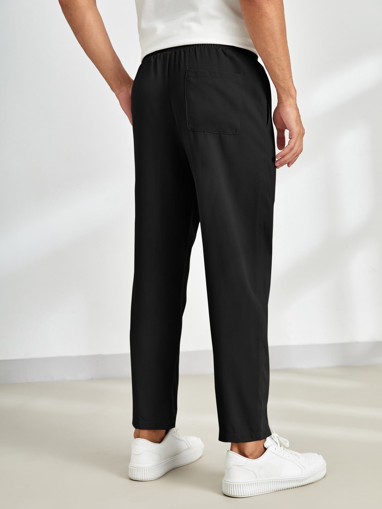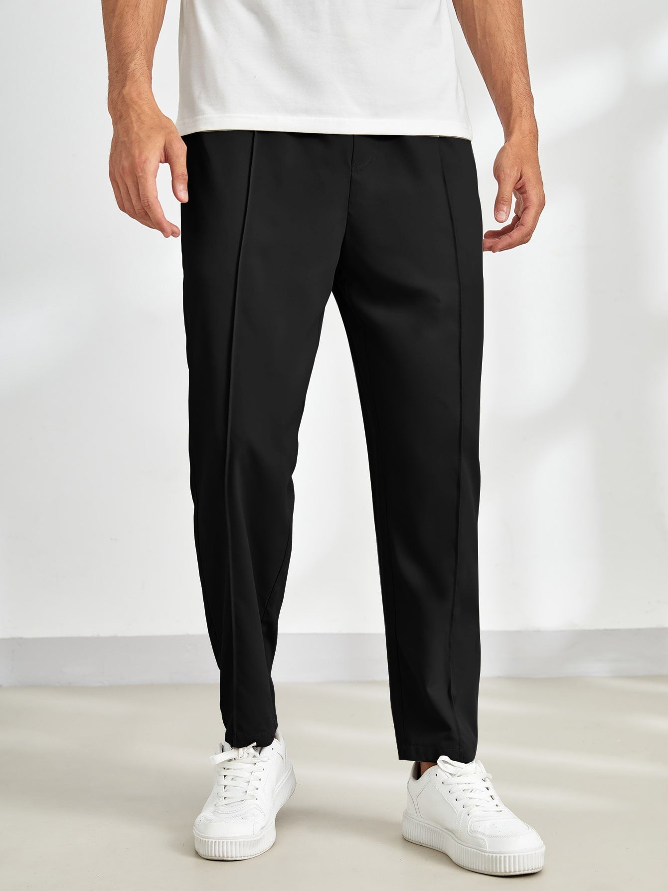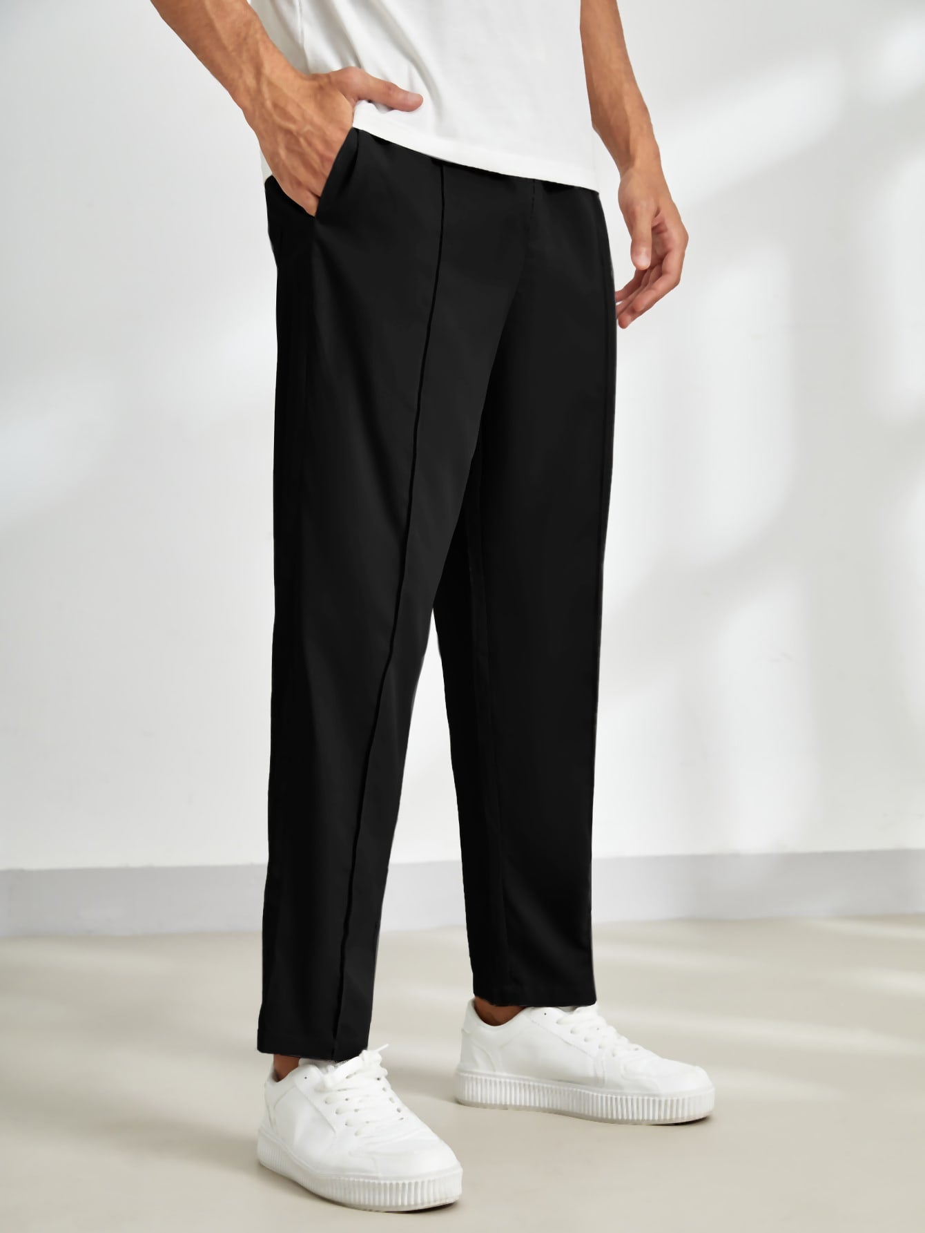 These black tailored pants offer a sleek and versatile look, perfect for casual and semi-formal outfits. The clean lines and minimalistic design enhance their modern appeal.