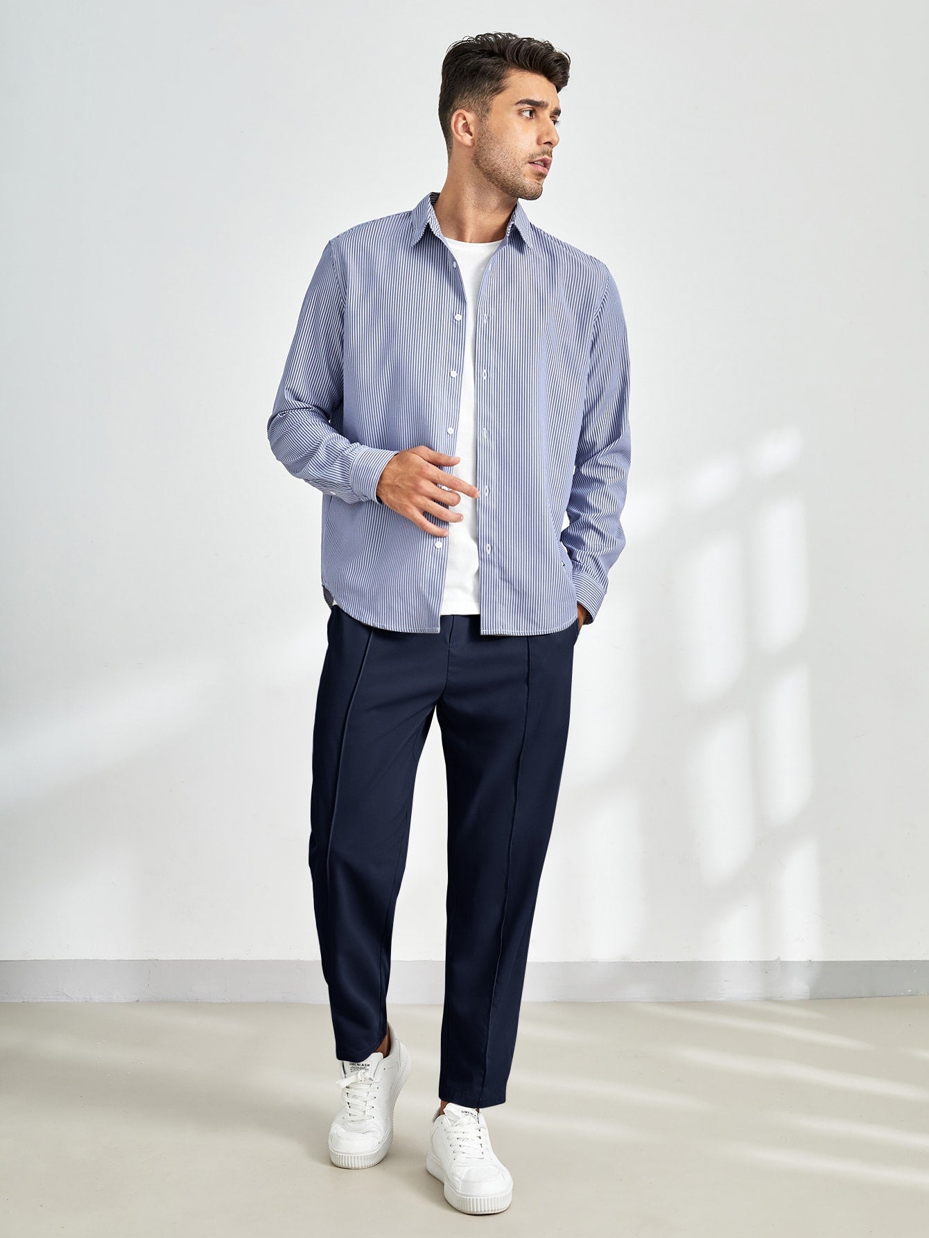 • Slim, tapered fit provides a sharp and polished silhouette.