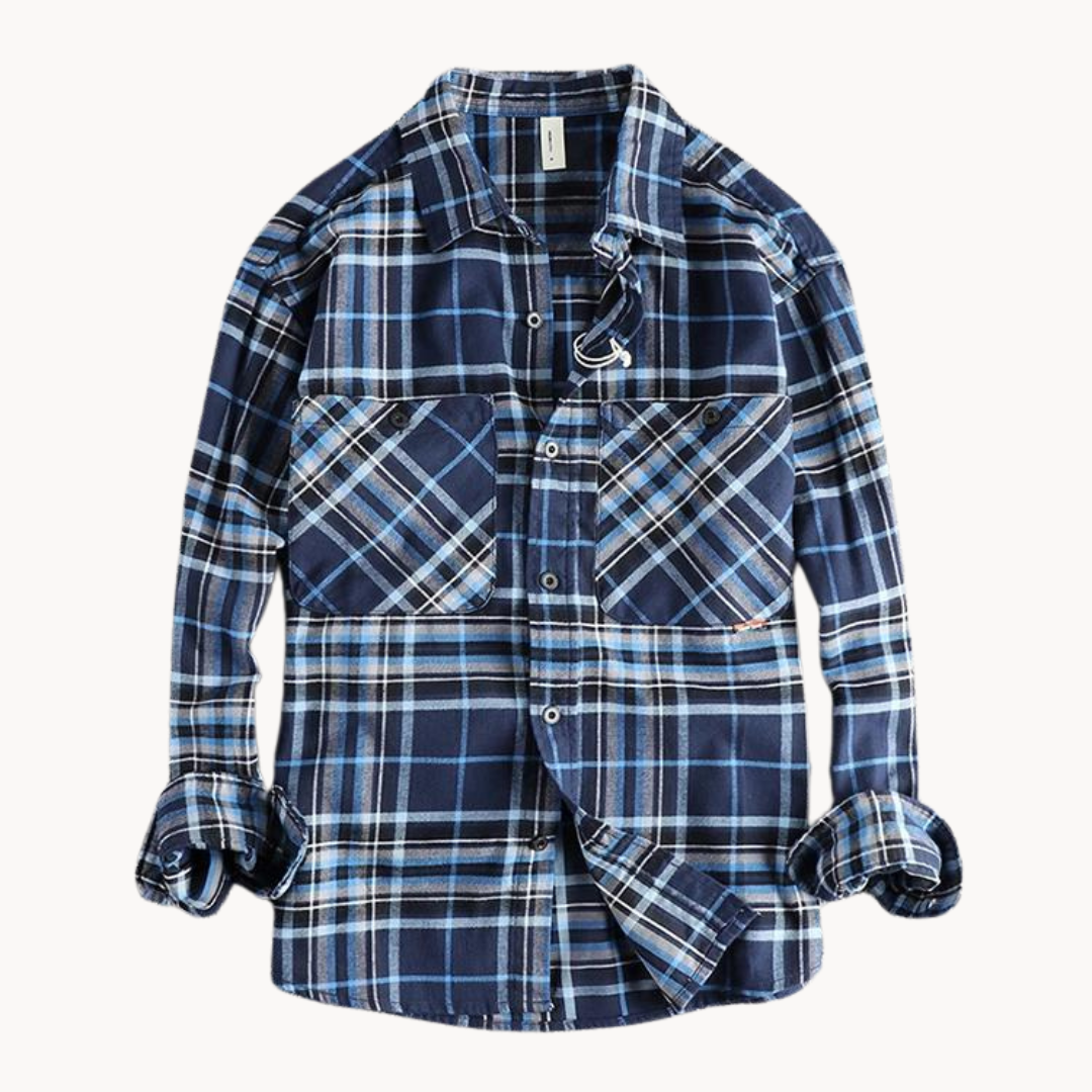 This plaid shirt blends timeless style with a rugged appeal, making it a versatile choice for both casual and layered looks. The green and white checkered pattern brings a fresh yet classic vibe, while the double chest pockets add practicality and detail to the design.